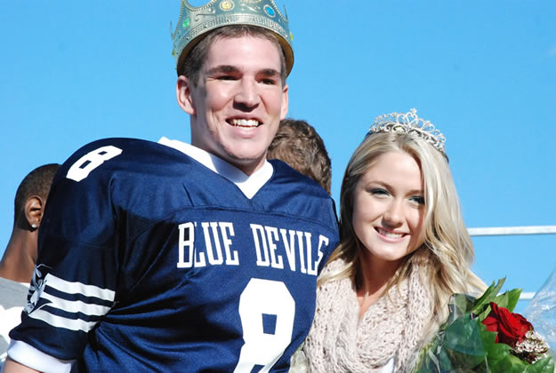 The half-time festivities naturally included crowning of the homecoming king and queen. Nominees for king included Dan Plant, Derrick Sherrod, Thomas Mulligan and Jack Cutrone. The nominees for queen were Kristina Casale, Samantha Palmer, Alanna Alongi and Kari Peer.