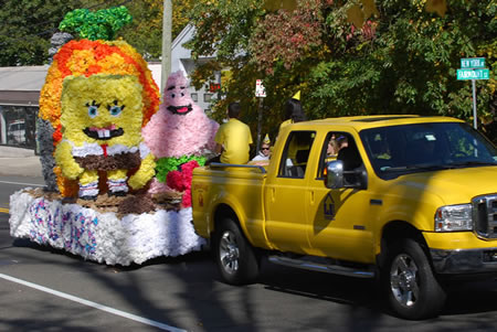 Students spent Friday night building class floats as DJ Anthony Troffa's music selections, hot pizza and cool refreshments kept the teenagers motivated until midnight. The ingenious floats all adhered to this year's homecoming theme: children's cartoons.