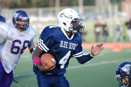 The Blue Devil marching band, decked out in its eye-catching blue-and-white uniforms, put on a fabulous half-time show, complete with a dizzying display by the band's color guard. An especially hip performance by the Huntington Highsteppers, the high school's competitive dance team made the huge crowd filling the stadium sit-up and take notice.