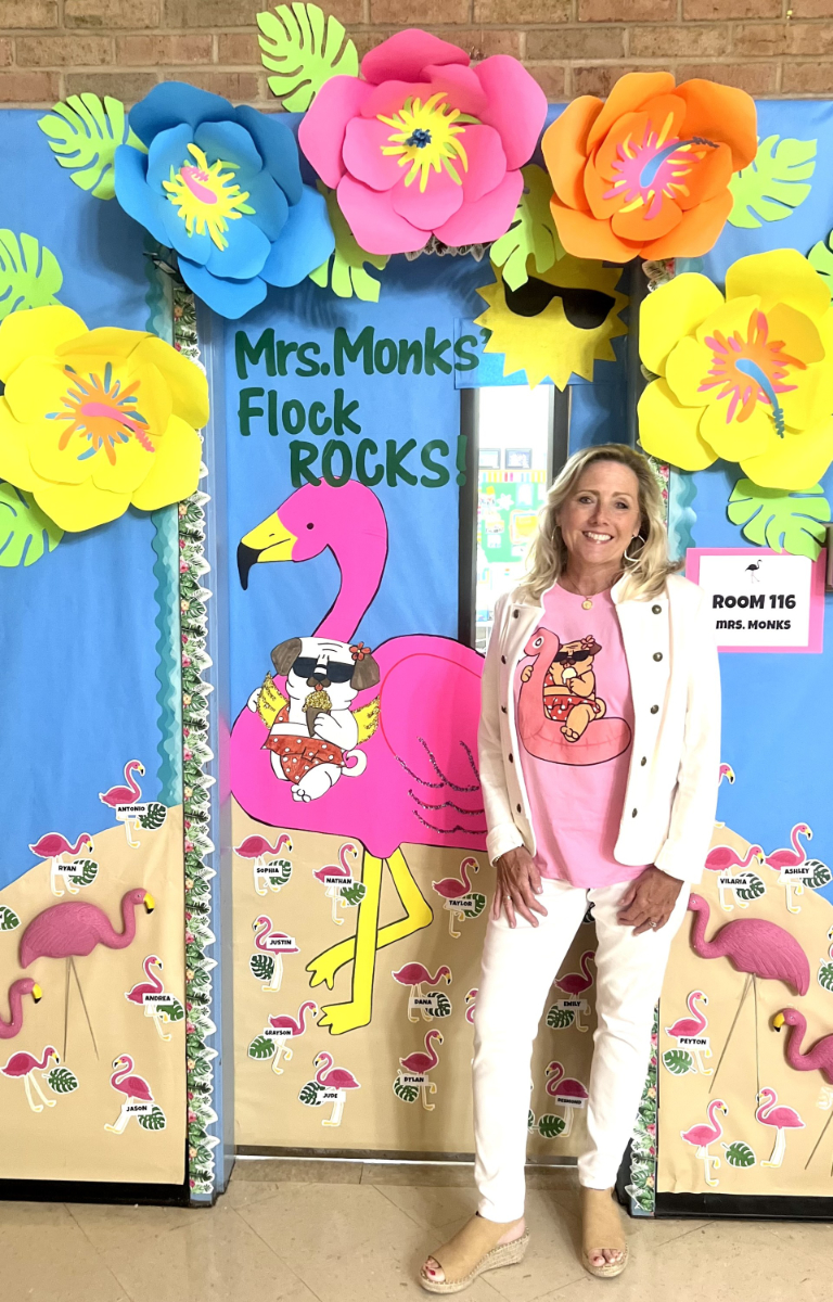 Ms. Monks is well known for her elaborate door and class decorating. “Her commitment to her students and the connection she forms doesn’t end when the students leave her class,” Ms. Moro said. Each year in January, Ms. Monks prepares a special letter for her students that are graduating seniors. The letter includes a class picture as well as individual pictures from when they were in class with Ms. Monks. The high school secretaries have shared that it is their favorite day of the year when all the kids are called to the main office to get their letters from Ms. Monks.”