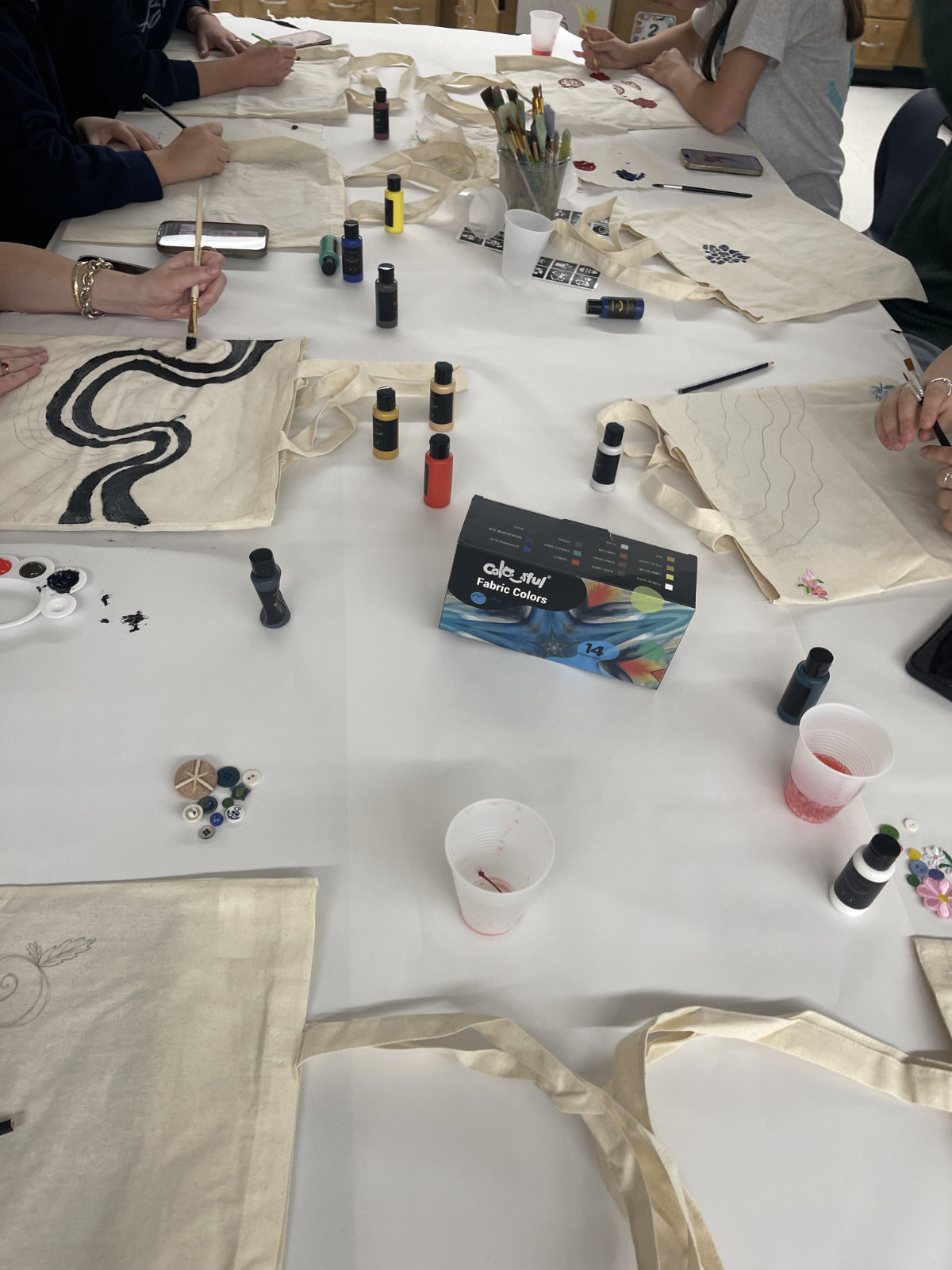 Huntington High School’s Environmental Club sprang to life for an Earth Day related event. Students decorated their own reusable tote bags in celebration of the special day. There was paint, patches, fabric scraps, buttons, and “Shirley Temples” for refreshments.