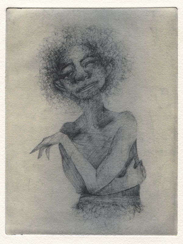For the uninitiated, Solarplate etching is a non-toxic alternative to etching with acid that utilizes a photosensitive emulsion on a metal plate. “The artist draws onto a transparent film which is then laid over the plate and exposed to light, activating the photo sensitized emulsion,” Ms. Mohanty said. “The plate is then washed and these areas drawn on dissolve, leaving behind furrows with exact fidelity to the artist’s drawing. It is then inked and printed like a traditional etching. Solarplate offers an expanded range of techniques and aesthetic versatility without the toxicity of etching with acid and solvents.”
