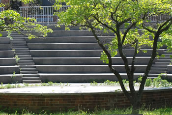 The large concrete amphitheater can be used for all types of small and large gatherings and a variety of performances. It is the only such structure in the district, which has eight separate school buildings.