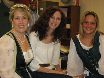 Teachers Jennifer Schnitzer and Roy Dumar had students design coats of arms and engage in a variety of Shakespearean language experiences, as well as pursuing a web-quest through the use of a portable laptop cart brought into the room just for the day. Music teacher Steven Finch directed the chorus in a performance of Renaissance period songs in the library.