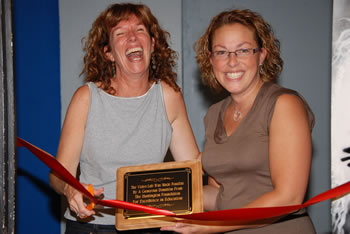 At grand opening ceremony Mrs. Swan demonstrated aspects of the hardware and software and played some student video work. She beamed when speaking about the video program and lab and said the new equipment will lead to even more exposure at film festivals for students submitting entries.
