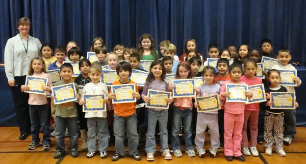 The students were recognized as "students-of-the-month" and given special certificates. Naturally, the group was gathered together and photos recorded the event for posterity.