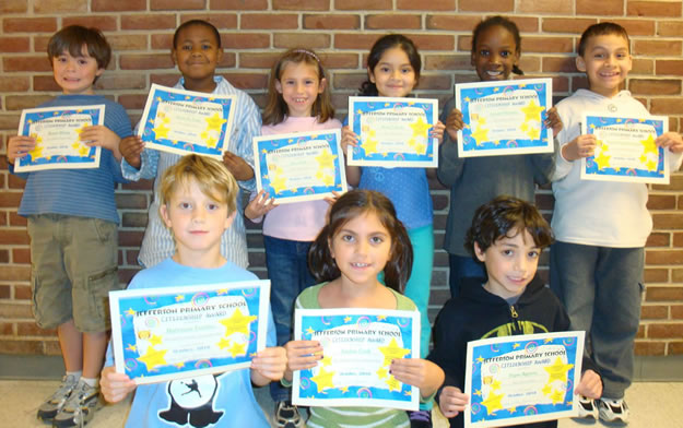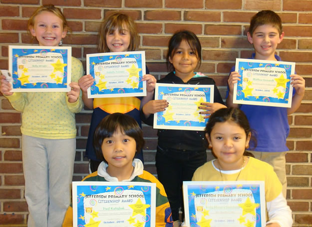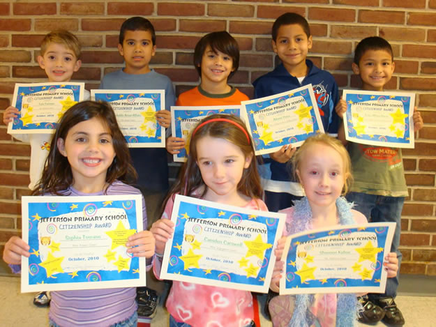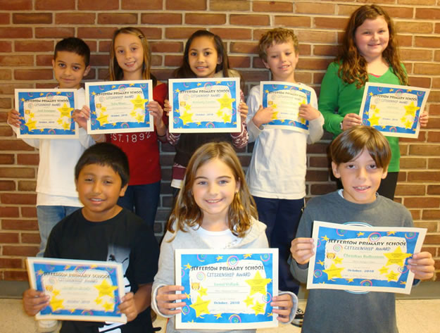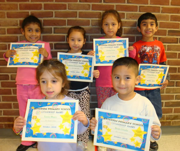 Jefferson Primary School teachers and Principal Margaret H. Evers took time out of their busy schedules to honor a group of youngsters who shined throughout October.