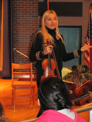 Internationally acclaimed violin soloist Joanna Kaczorowska paid a recent visit to eighth grade orchestra students at J. Taylor Finley Middle School, sharing her love of music and exceptional playing and teaching abilities.