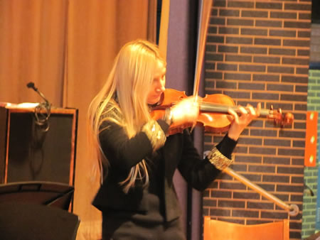 "Joanna is a very talented, gifted, and skillful violinist," eighth grader Patrick Kennedy said. "She had a magical affect on all of us. Her masterful fingers danced across the strings and her bow flew from string to string with precision. She played passionately and impressed all the students at Finley. She was amazing and I hope to play as well as her."