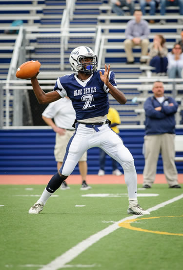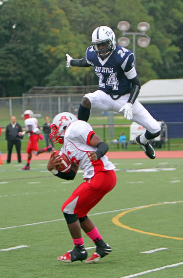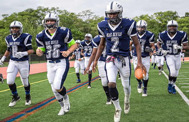 Huntington got untracked early as Jahmik Curry returned the opening kickoff 85 yards to the Amityville one-yard line. Quarterback Davonte Evans scored on the first play from scrimmage to give the Blue Devils a lead they never surrendered.