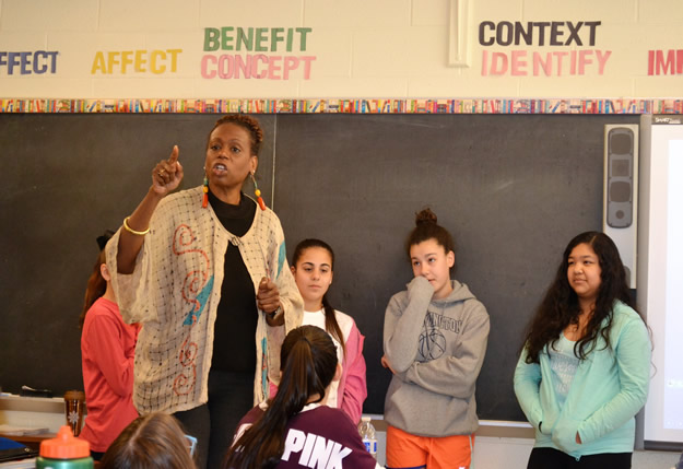 Ms. Humes told the seventh graders that rap is really just “poetry plus rhythm.”