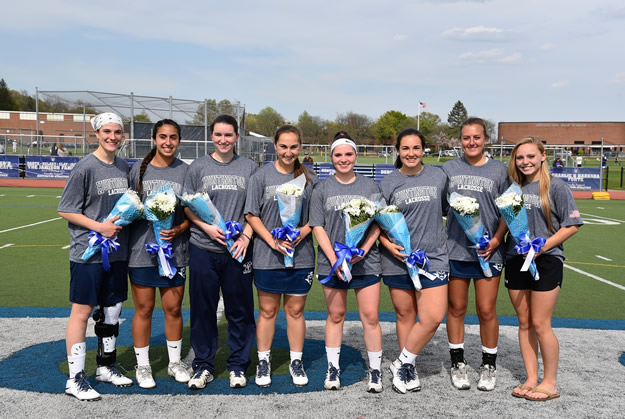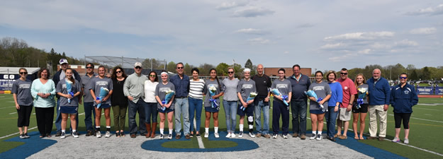 Hailey Bengston, Allison Berejka, Emma DeGennaro, Irina DeSimone Brianna McDonald, Taylor Moreno, Meghan Plant and Katie Reilly were recognized on Senior Day at Blue Devil Field.