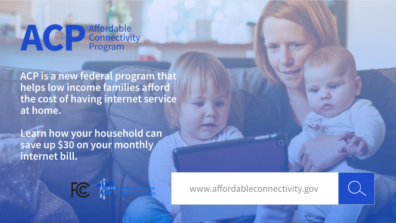 Affordable Connectivity Program information for those who qualify for the Free or Reduced Meal Program, SNAP or other federal assistance programs may be eligible for discounts on their internet bill.
